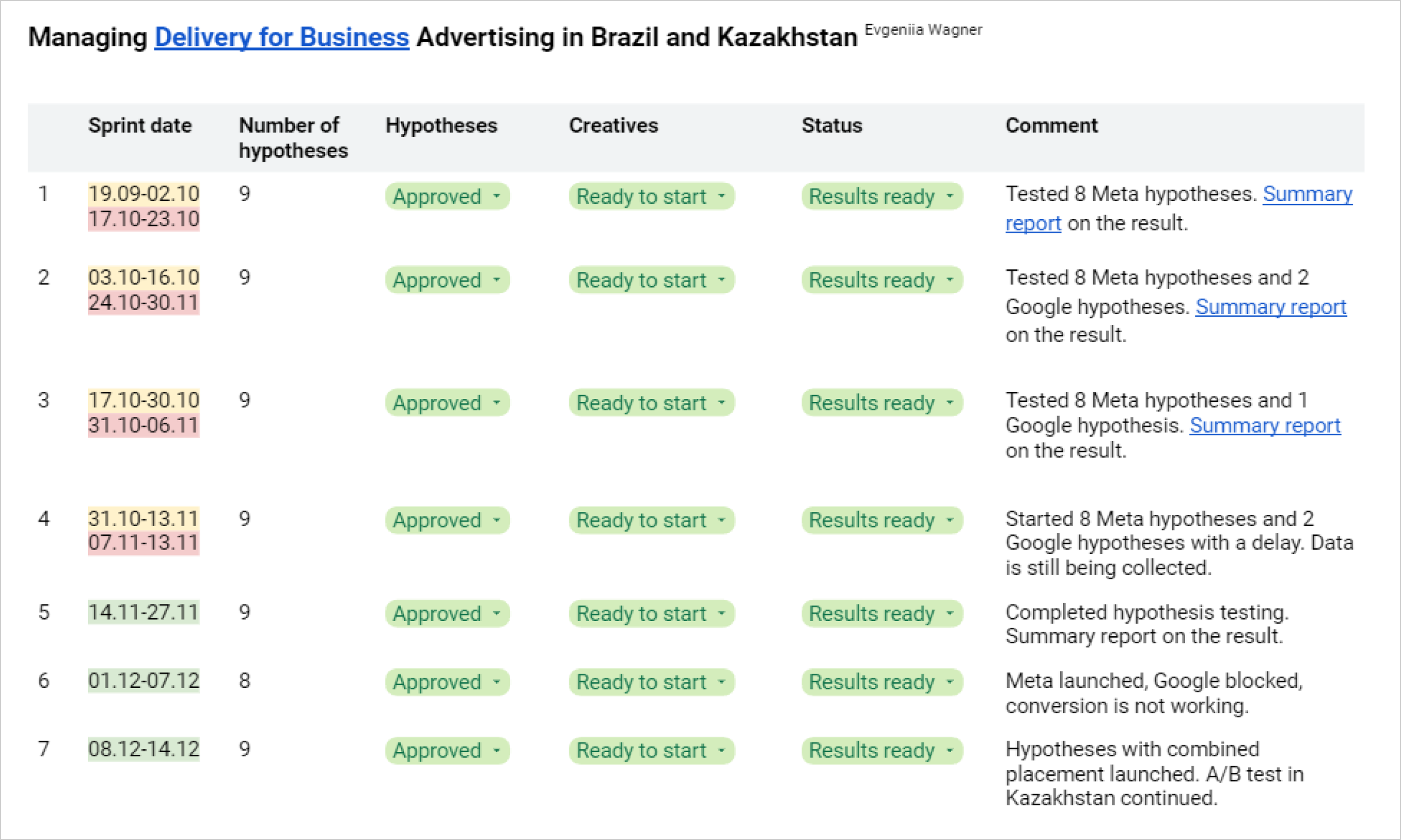 «We structured our workflow to ensure everyone knew about the project's progress. We reviewed sprint results together weekly, keeping the inDrive team informed about expenses and changes. Each meeting followed a specific structure. We started by examining absolute and relative project figures: the outcomes of testing new hypotheses and the impact of optimization hypotheses. We also analyzed our progress toward target metrics and discussed strategies to reduce customer acquisition costs and generate more leads.